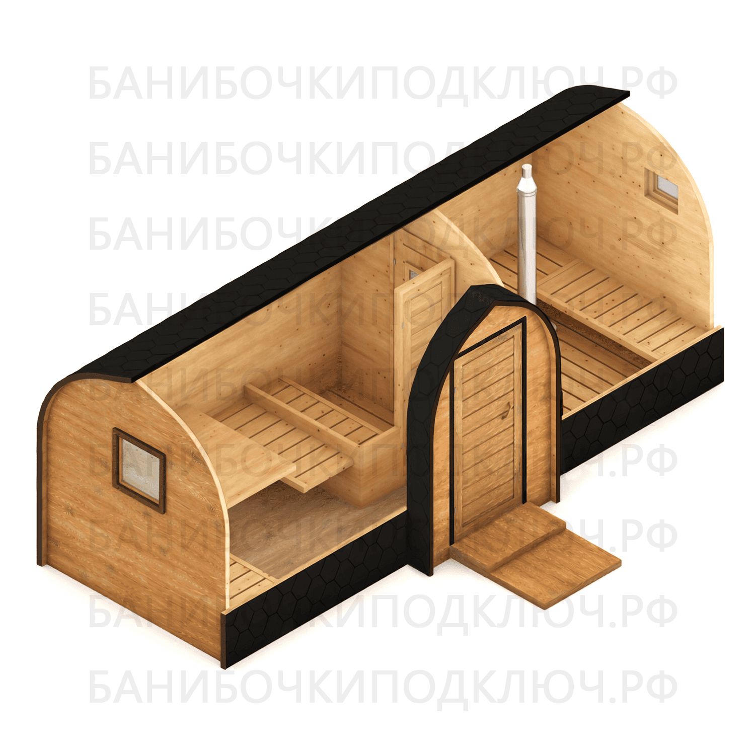Баня Викинг 6 x 2,2 м с арочным входом и проходной мойкой